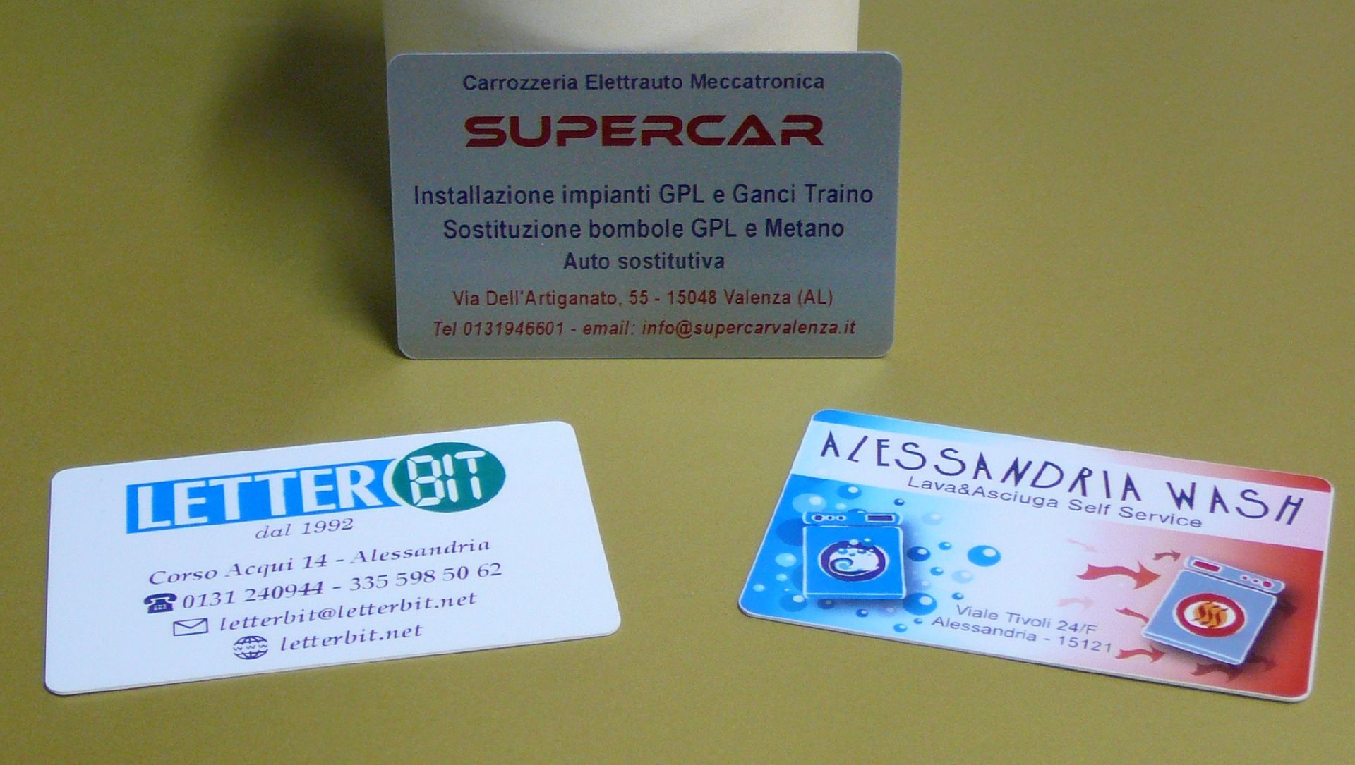 Tessere in PVC stampate in digitale, adatte per realizzare biglietti da visita di prestigio (stampa mono e bifacciale a colori) oppure tessere di riconoscimento per le diverse attività