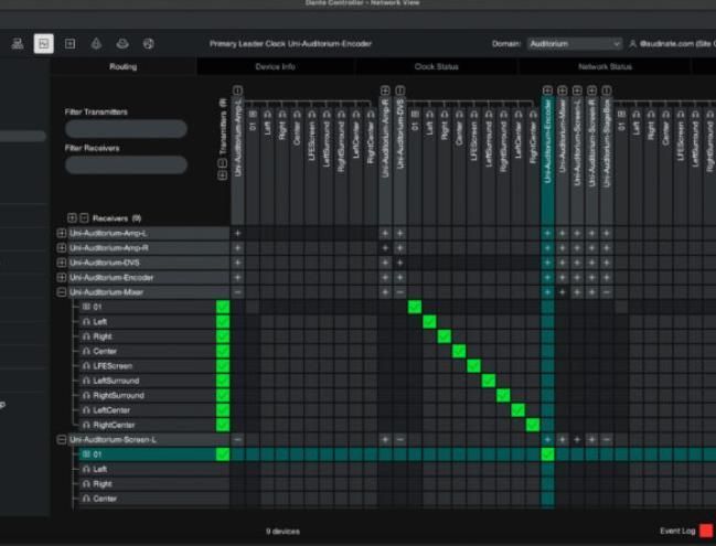 Tramite il cruscotto del Controller, è inoltre possibile tenere sotto controllo la latenza di trasmissione di ogni apparato collegato alla rete Dante® (ovvero il tempo di conversione dei pacchetti, comunque sempre esistente in tutti i sistemi di conversione dac).