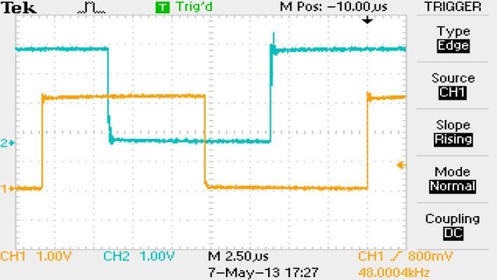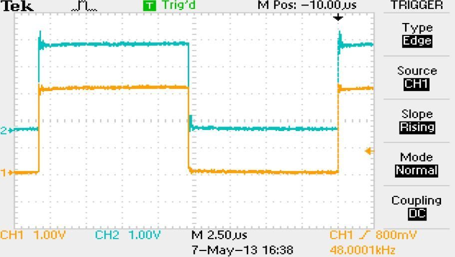 In azzurro: segnale word clock in uscita dalla rete Dante® in ingresso al ricevitore